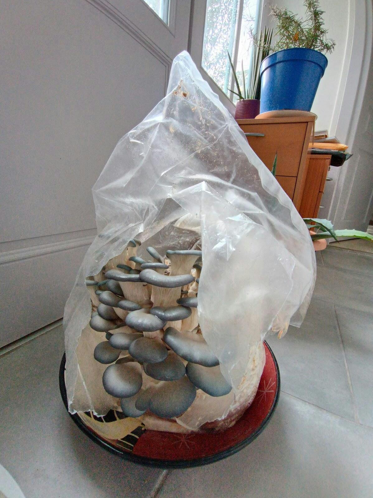 - Récolte : Entre 1,5 et 2 kg de champignons frais sur 3 récoltes.